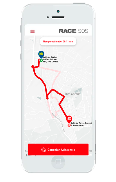 Asistencia inteligente a un solo clic: Olvídate de explicar dónde estás. Con la función RACE SOS, te geolocalizamos al instante mediante el GPS de tu dispositivo.