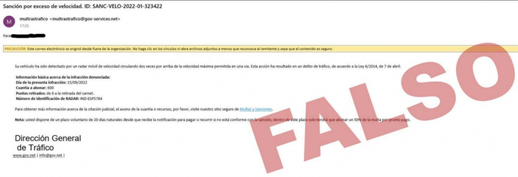 Los fraudes a veces están bien trabajados para que te engañen lo máximo posible y firman como si se tratase de algún organismo oficial, con el mismo logo y tipografía. En cualquier caso, un correo electrónico nunca va a ser una forma legal para notificarte una sanción. Además, sospecha si en una comunicación oficial hay faltas de ortografía o errores gramaticales, como puedes observar en la siguiente imagen.
