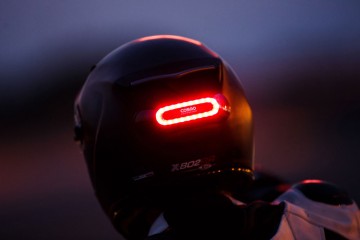 El dispositivo Cosmo Connected, que se coloca en el casco, avisa al resto de conductores con una luz roja cuando el motorista aminora la velocidad o para direct...